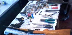 Fitaovam-piadiana maro toy ny P.A, basy lava, bala sy karazana fanalahidy, ary fitaovana fanamboarana basy no sarona tao Ambaibo Ambanja. I